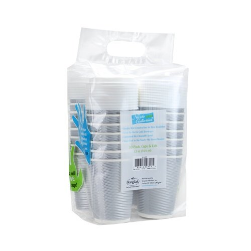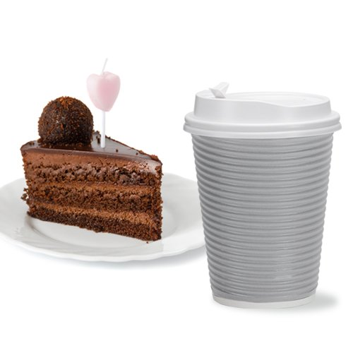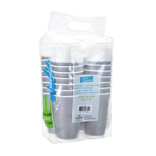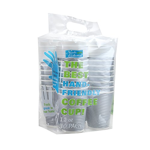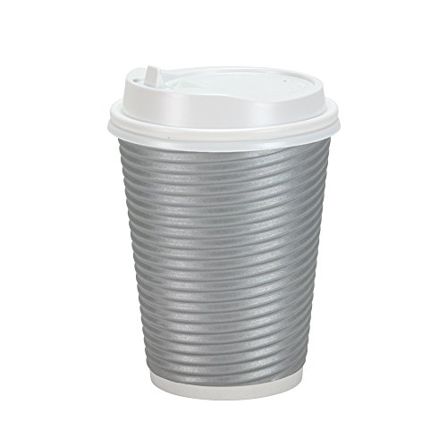 PREMIUM Disposable Hot Paper Cups With Lids, Double Wall & Ripple Insulation For Heat Protection, Silver, 30 Count - 12 oz