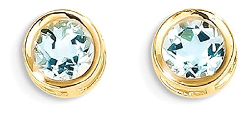 ICECARATS DESIGNER JEWELRY 14K YELLOW GOLD 5MM BEZEL BLUE AQUAMARINE STUD BALL BUTTON STUD EARRINGS
