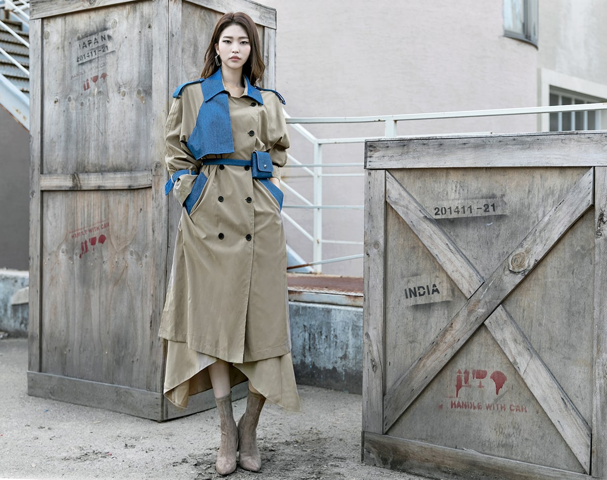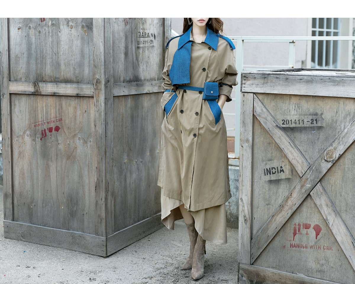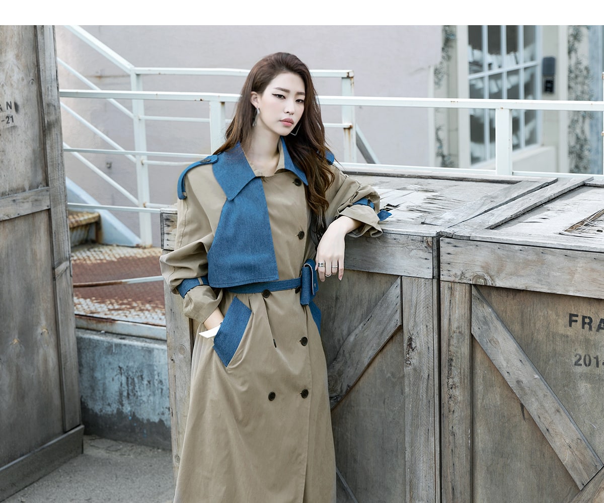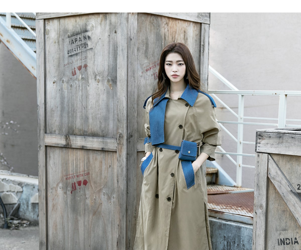 J-5032 데님 포인트 트렌치 코트(벨트set) Beige