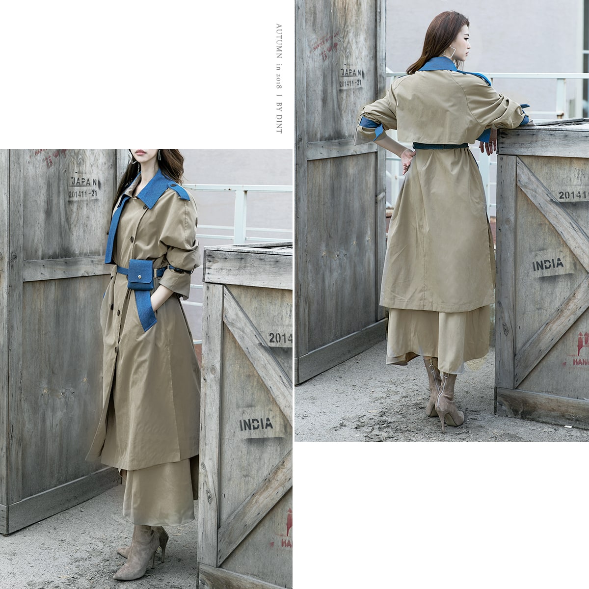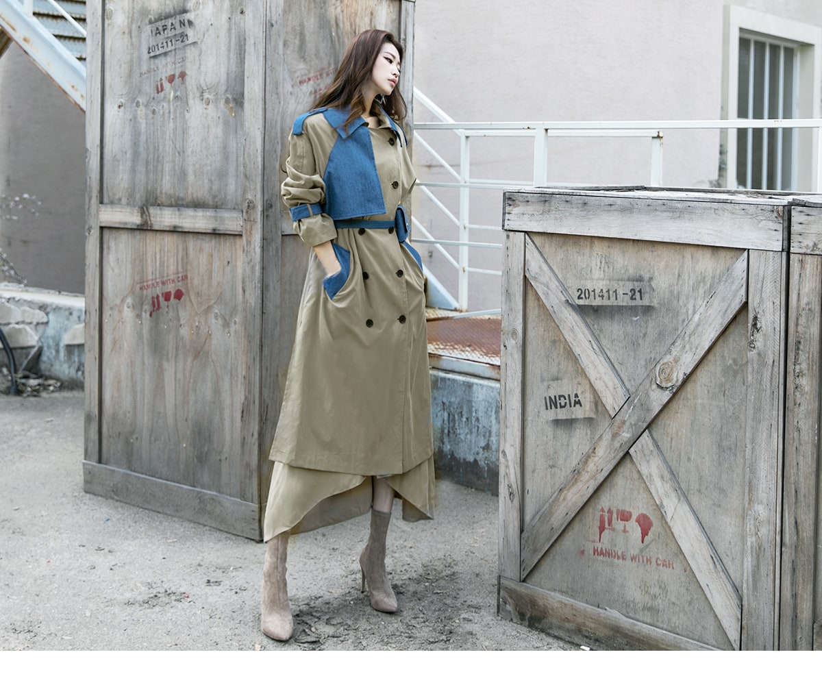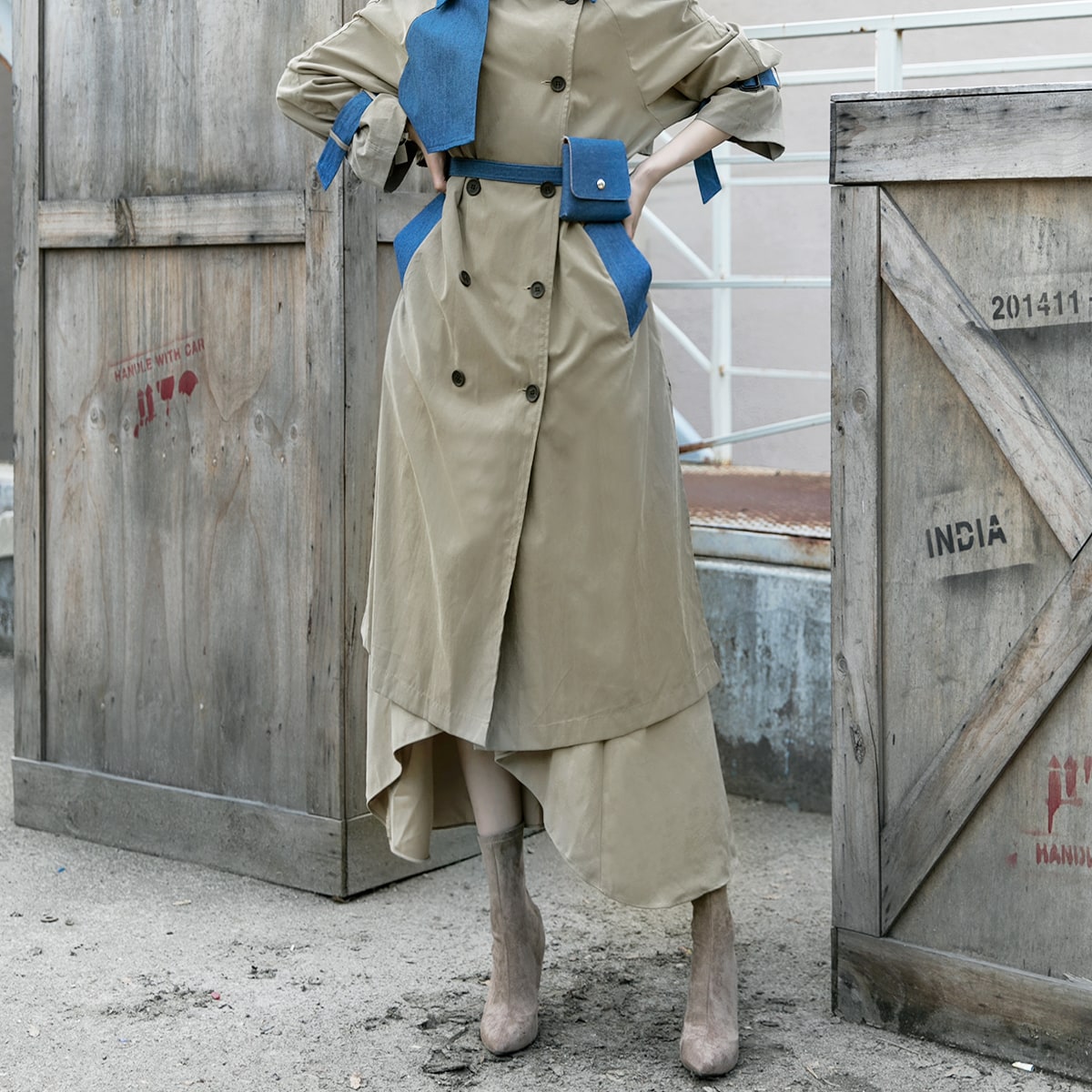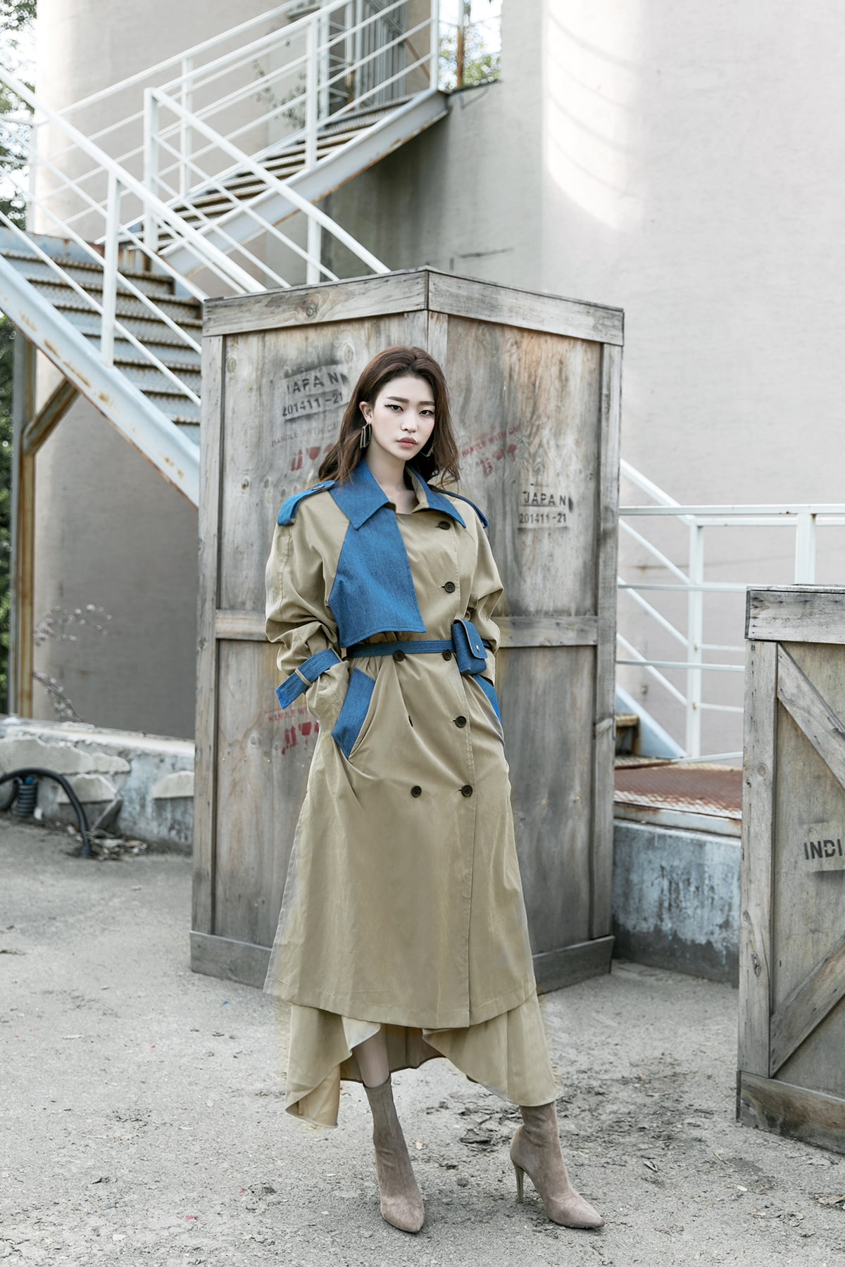 J-5032 데님 포인트 트렌치 코트(벨트set) Beige