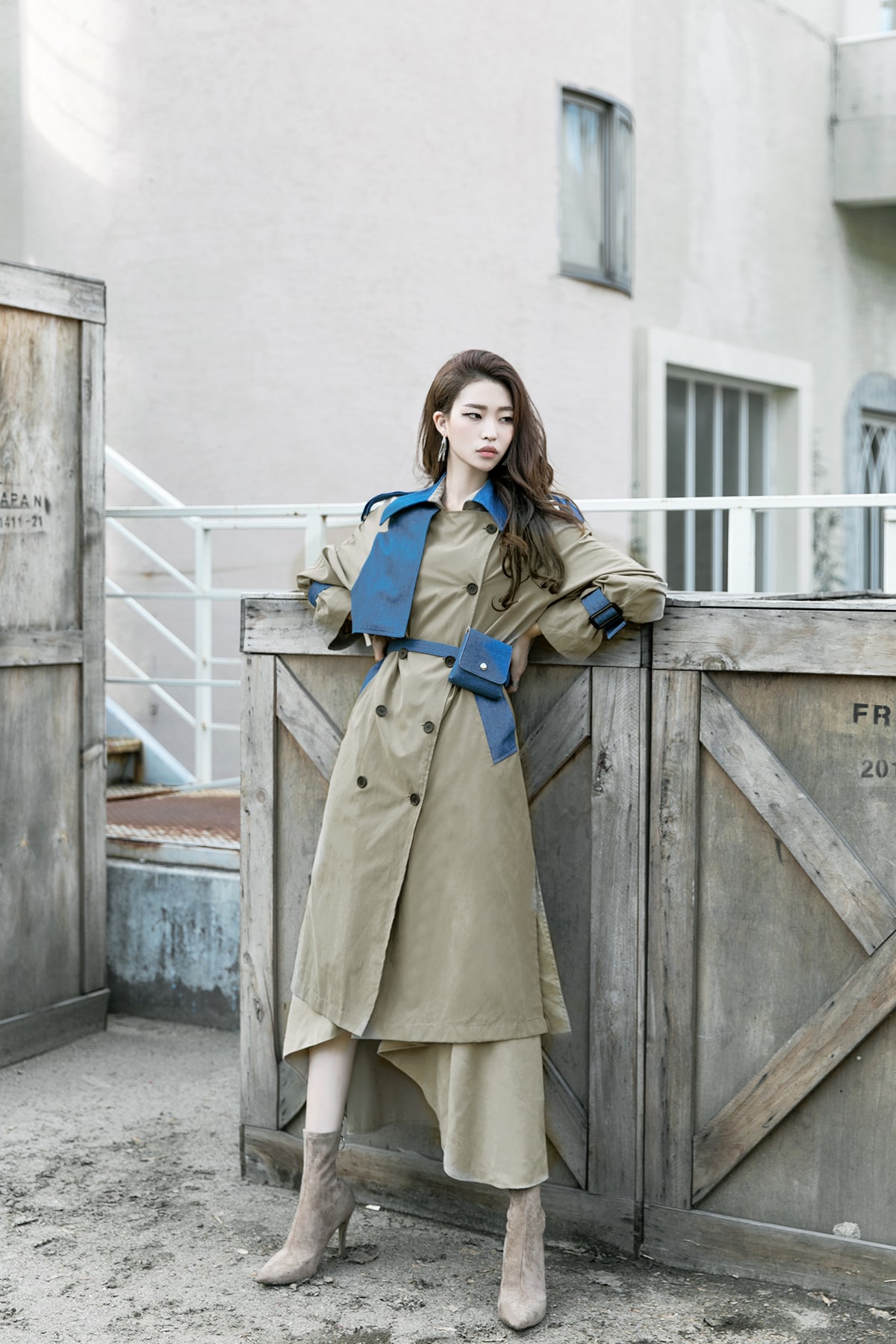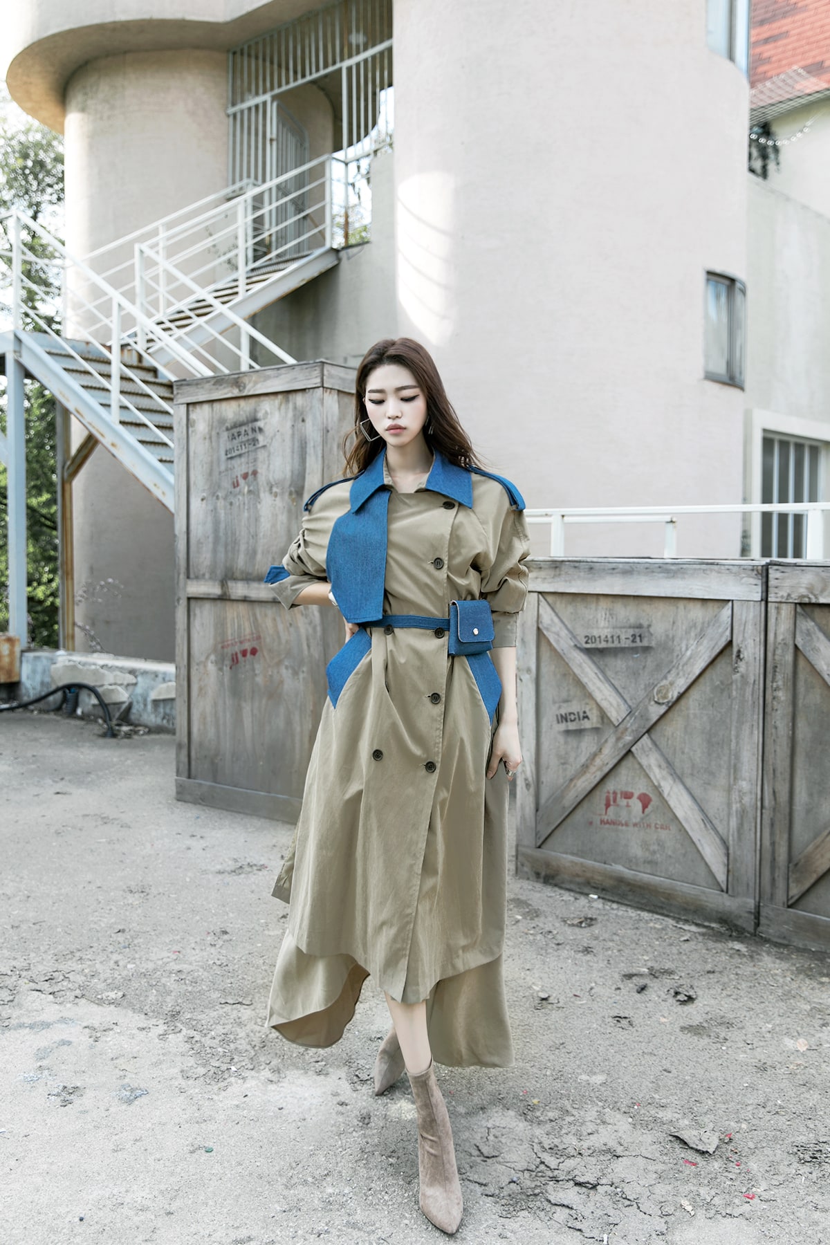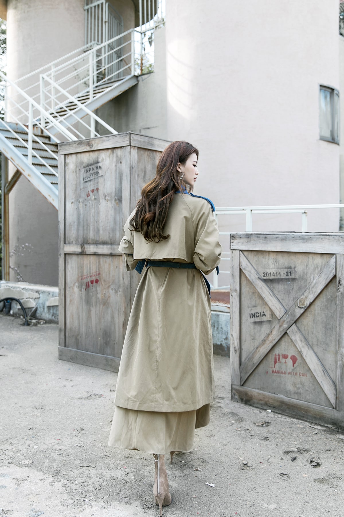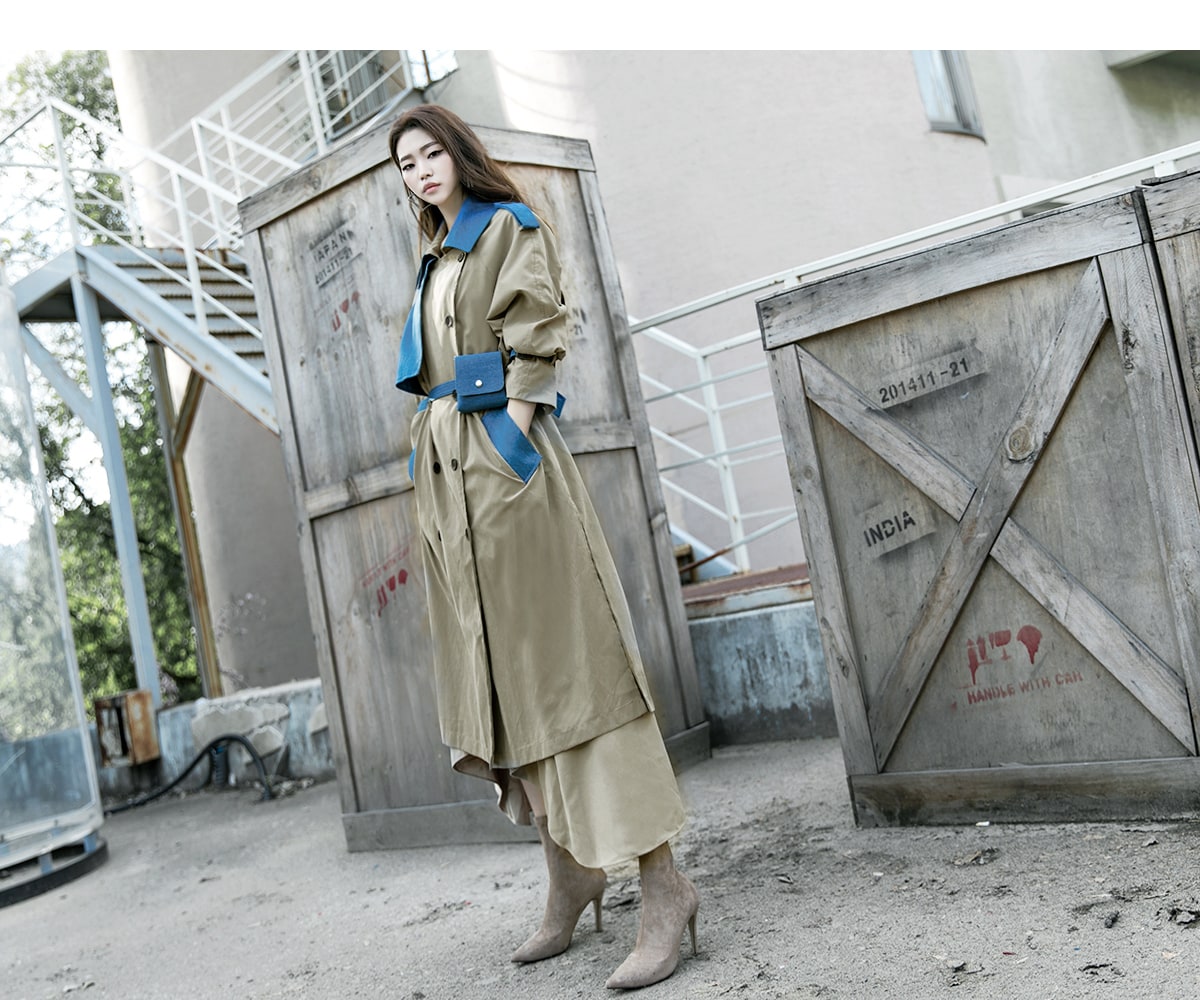 J-5032 데님 포인트 트렌치 코트(벨트set) Beige