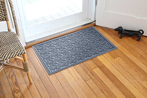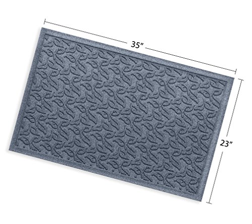 Ideal for areas with heavy foot traffic, the Bungalow Flooring Waterhog Standard Doormat protects your floors from water, mud, sand, snow and other elements. Its ribbed leaf design and exclusive "Water Dam" raised border traps dirt and absorbs moisture from shoes and pets to keep grime contained and your floors clean. Made from 24-ounce anti-static polypropylene, this 2-foot by 3-foot durable mat dries quickly and will not mildew, mold or rot. Featuring a commercial-grade, molded construction that will not crush or break down over time, the Waterhog Standard Doormat is highly resistant to extreme elements and suitable for indoor or outdoor use. Features a non-skid SBR rubber backing made with 20% recycled rubber that is environmentally friendly and certified slip resistant by the National Floor Safety Institute. For maintenance, simply hose clean or spot clean as needed and air dry. Made in the USA.