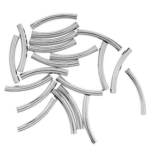 Beadaholique Curved Noodle Tube Beads, Silver Plated, 3mm by 22mm