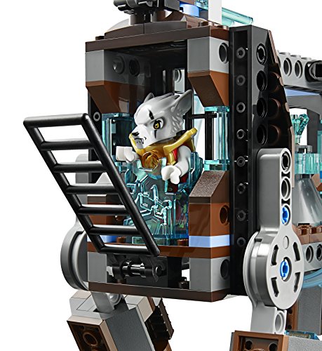 The icy bad guys from the Mammoth and Saber-tooth tribes are getting away with the CHI in Maula's Ice Mammoth Stomper. With a weapon in its trunk plus 2 ice blaster cannons and hidden flick missiles, this is one fearsome armored vehicle. Give chase with Worriz on his fire slider and Razar, avoiding the mighty Stomper's powerful legs and giant feet. Move fast to grab back the CHI before Mottrot launches the Mammoth's detachable flyer and they escape. Includes 6 minifigures with assorted weapons: Maula, Mottrot, Strainor, Vornon, Razar and Worriz. Features a posable trunk with weapon, ice tusks and ribs, posable legs, giant feet, cockpit with space for a mammoth minifigure and hi-tech dashboard, command area, ice prison, 2 weapon racks with a spear, sword, wrench and hammer, ladder and translucent elements plus detachable flyer with 2 flick missiles and cannons, rotating propellers and cockpit with space for a mammoth minifigure.
