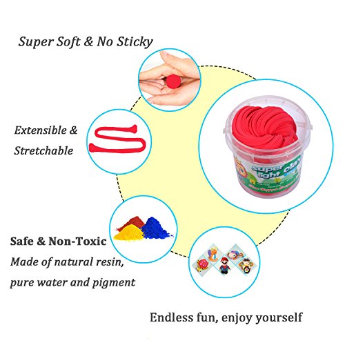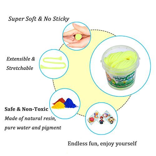 【Super Soft & Non-sticky】 Der Ultra-Light Clay ist super weich und das Material ist nicht klebrig. Egal wie du es kneifst, verlangst es, druckst es oder verdrehst es, der Schleim wird nicht an deine Hande haften.