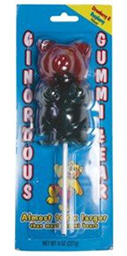 -. Feature : Have some laughs devouring this huge, cute Gummi Bear / Assorted Gummi Bears / One ie strawberry and blue raspberry flavored / The other is Cherry and Green Apple Flavored / Flavor is chosen at random