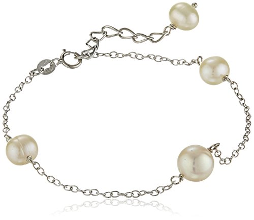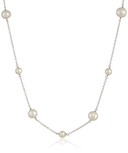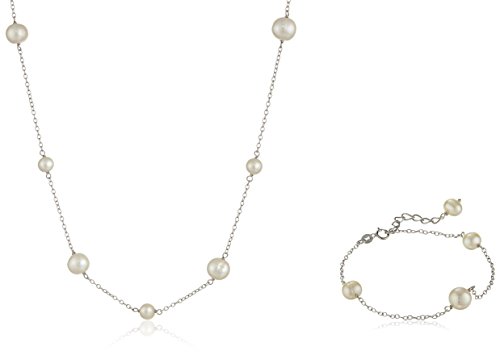 Jewelry set including matching necklace and bracelet, both crafted from sterling silver cable chains with stations of Chinese freshwater cultured pearls.
