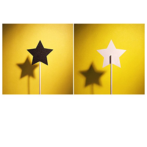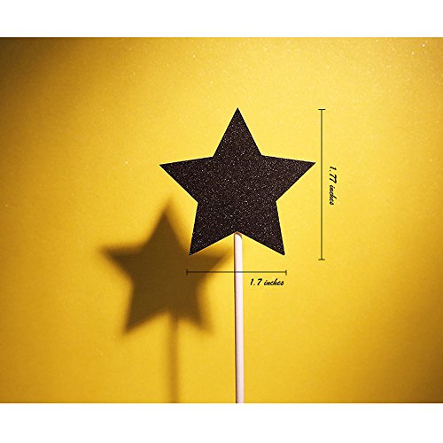 - Black and Gold Star Cupcake Toppers: Star confetti diameter approx. 1.7 inches (4.3 cm), bamboo picks length approx. 3.54 inches.