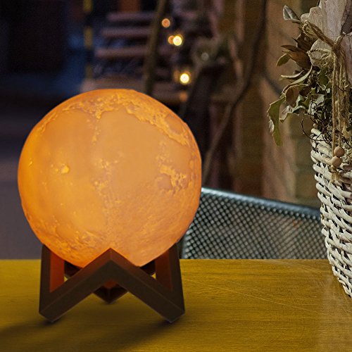 3D Moon Lamp 5.9 Inch, Slopehill Lunar Night Light LED Yellow Warm and White 3 Colors Change Tapping Control with USB Charging, Home Decorative Lights Baby Nursery Lamp Best Gift (15 CM)
