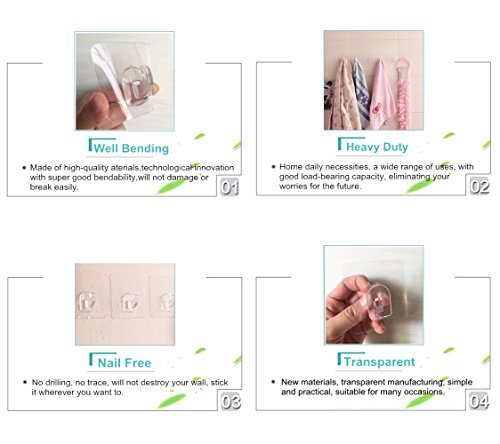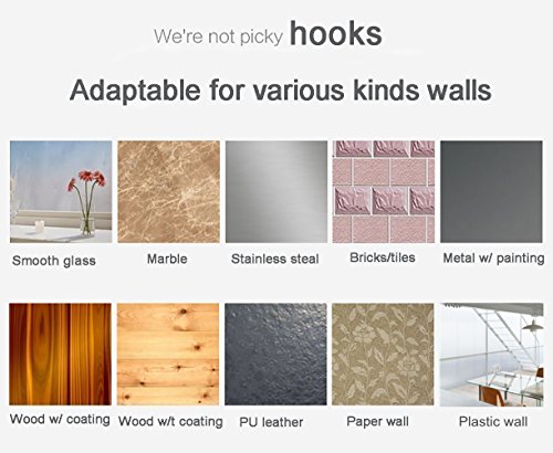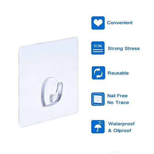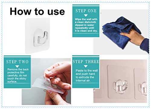 Studio : Ninth Five Publisher : Ninth Five Product Description WHERE DO YOU ALSO HAVE SUCH WORRY? Nail Damaging the Wall Adhesion Not Durable and Residue Inferior Quality,Not Durable and Not Good Smell Not water-proof and Easy to mold ... You just need such a durable adhesive hook to get rid of trouble. These hooks are viscous and firm with super load bearing property.It is quite safe and environmentally friendly to use these hooks without leaving glue marks on walls.More convenience for your life! Installation method: 1.Clean the wall before use. 2.Tear off the back of the protective film and protect the film well. 3.When pressing the hook from the center to the periphery,the internal air is completely excluded. 4.12 hours after hanging weight effect is better. 5.Washing the adhesive surface by water if it is dirty.but do not touch it by hand,then use again when it dry naturally. Disassembly method: 1.Gently open the hook edge. 2.Slowly tear off the hook. 3.Do not directly pull the hook to remove. 4.Long time when not in use,please use a protective so that the next use. Notice: 1.Do not stick on the surface of water,dust,oil,wax.Please clean the adhesive surface with water if it has dust covered before reposition the hook. 2.Do not hang valuable and fragile items. 3.Do not use near high temperature. 4.It may damage the wall if the paint wall adhesion is poor. 5.Normally on the smooth tile surface, this hook can hold up to 13.2lb/6kg. But we'd like to suggest no more than 8.8lb/4kg for hoilding a long time.