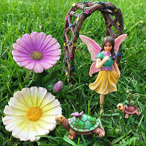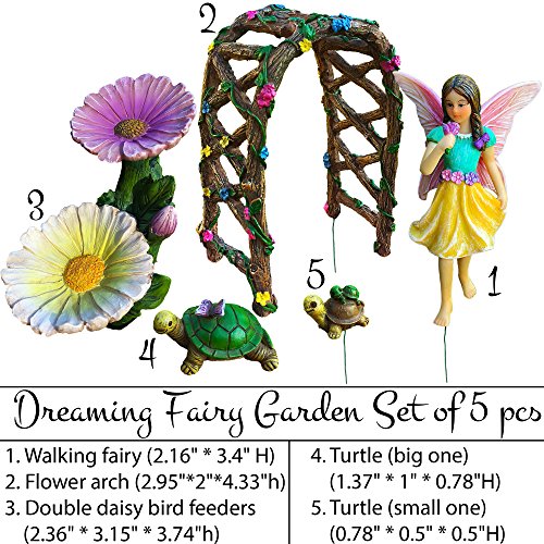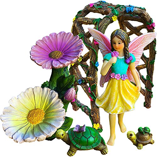 Fairy Garden - Figurines And Accessories Kit - Hand Painted Miniature Arch Set of 5 pcs for Outdoor or House Decor - By Mood Lab