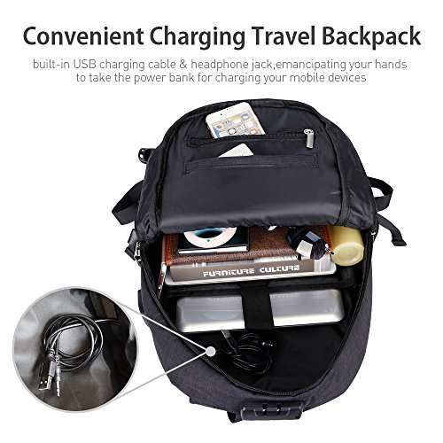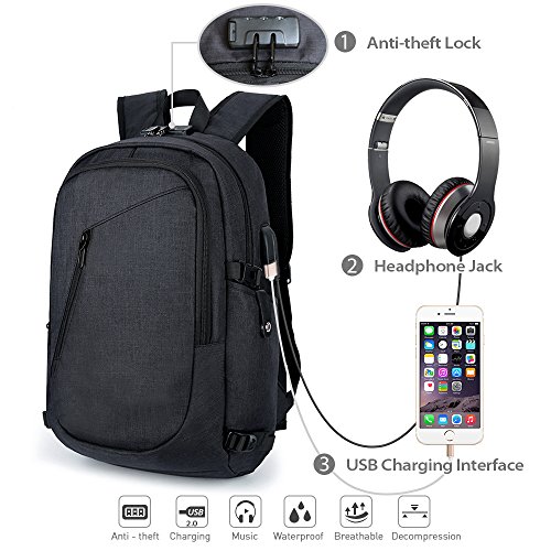 -. Title : Laptop Backpack,Business Travel Bag with USB Charging Port, Headphone slot, and Built-in Code Lock Compartment, Water Resistant Computer or book bag Fits Up to 15.6 Inch Laptop/note for work/college