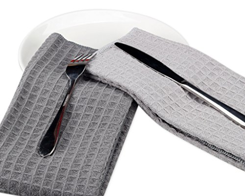 Kleanner SUPER PREMIUM Microfiber Waffle Weave Kitchen Dish Towel Tea Towel, Highly Absorbent, Set of 2 Pcs, 16 Inch x 24 Inch ( Grey )