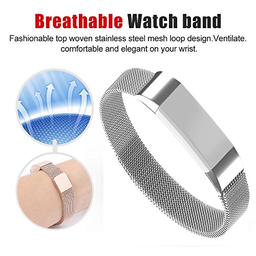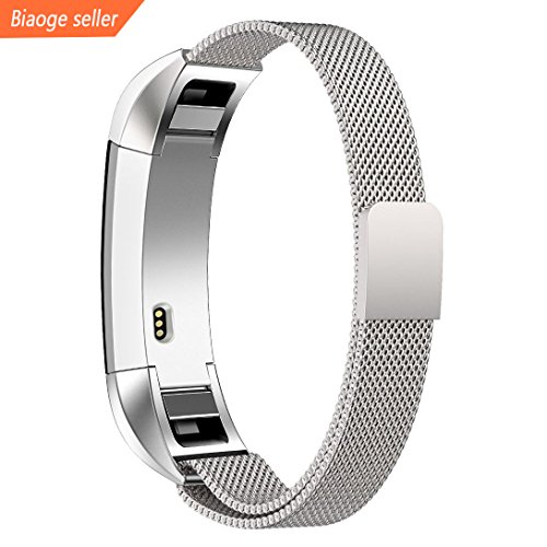 Fitbit Alta HR Bands and Alta Bands, Biaoge Milanese Magnetic Clasp Stainless Steel Metal Mesh Loop Accessories Watch Wristband Large Small for Fitbit Alta(HR)-Silver,Gold,Rose Gold,Black