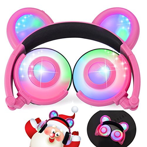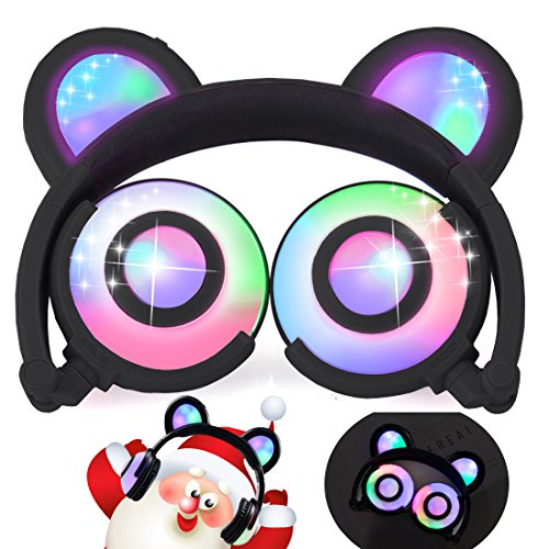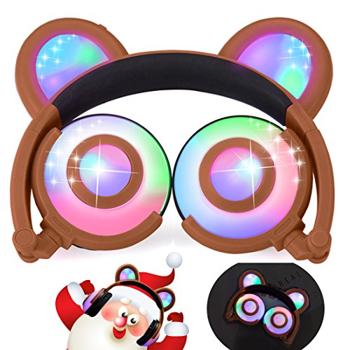 ♫ 2017 HOT VERSION: Cute bear ear headphones,newest and best selling foldable headband computer headphone with soft headband. LED flash light up to 30+ hours. Adjustable Headband to fit different sized heads. Excellent sound quality with super bass stereo. Over-the-ear cushioning for noise reduction and a secure fit. On/Off switch located behind right "Bear ear",right modes: on,blinking and off.