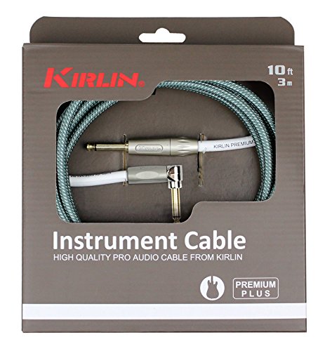 Kirlin Cable IWB-202PFGL-10/OL -10 feet- Straight to Right Angle 1/4-Inch Plug Premium Plus Instrument Cable, Olive Green Tweed Woven Jacket