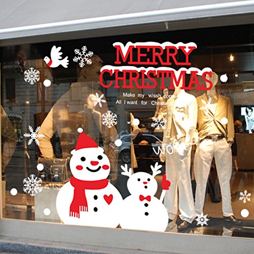 Merry Christmas Home Decor Decal Window Cling for Glasses Windows Door Show Window Removable Glass Sticker Creative Window View Home Decor Wall Decor 27.6x19.7 inches (Christmas snowman)
