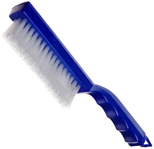 The Carlisle 4002700 thin line utility scratch brush has nylon bristles for the removal of grease and deposits. Its compact design enables use in difficult-to-reach and narrow areas. The blue handle is made of plastic for durability, has an ergonomic design for comfort and grip, and has a slot for hanging when not in use. The bristles are made of nylon, which offers excellent chemical resistance. The bristle area is 5-1/2 inches long, and the overall brush length is 11-1/2 inches.