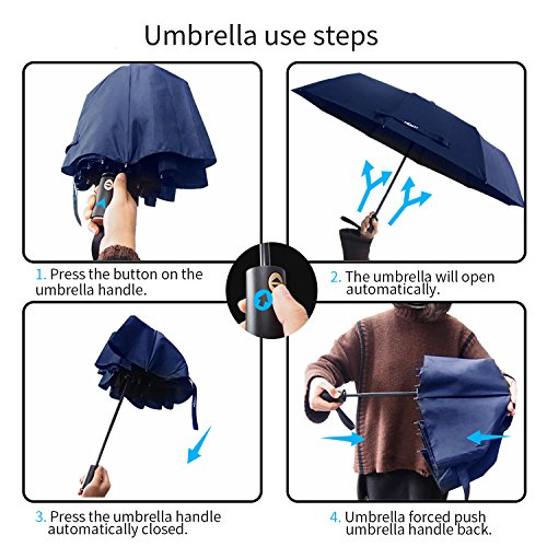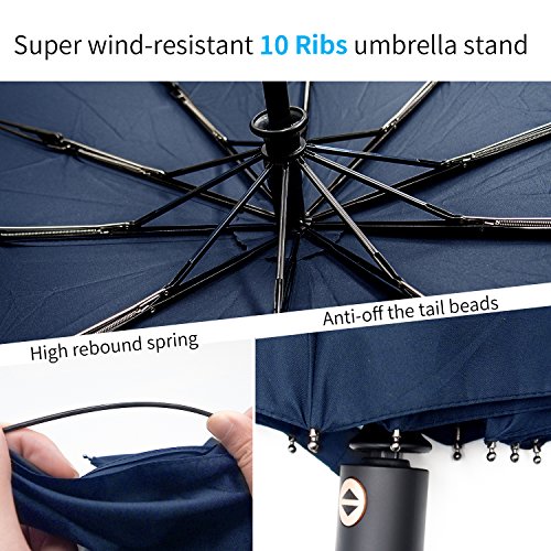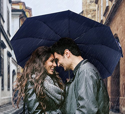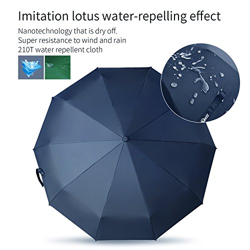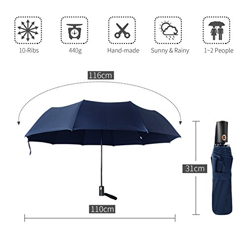 -Our Umbrella is made of a Super Fabric (210T Pongee Fabric) that ensures great protection and avoided hitting by the rain. -SUPER WINDPROOF:with 10 reinforced fiberglass ribs,strong umbrella ribs,more durable,not easy to rust. - Easily covering two people. -Classic dark blue, suitable for many occasions.