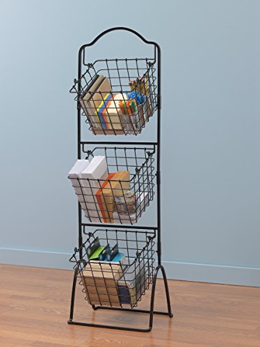 Studio : Gourmet Basics by Mikasa Publisher : Gourmet Basics by Mikasa Binding : Kitchen Product Description This Gourmet Basics by Mikasa 3 Tier Metal Market Basket is a unique product featuring an antique black brushed copper design, adding a modern touch to your decor. This 3 tier basket is great for storing or displaying food or other items. Crafted from high grade carbon structural steel for long lasting beauty even under rigorous use. Wipe clean with damp cloth. Measures 47-5/8 inches high x 11 inches wide x 14-1/2 inches long. 0