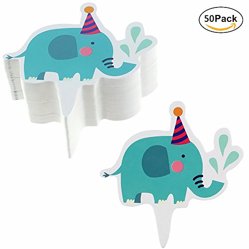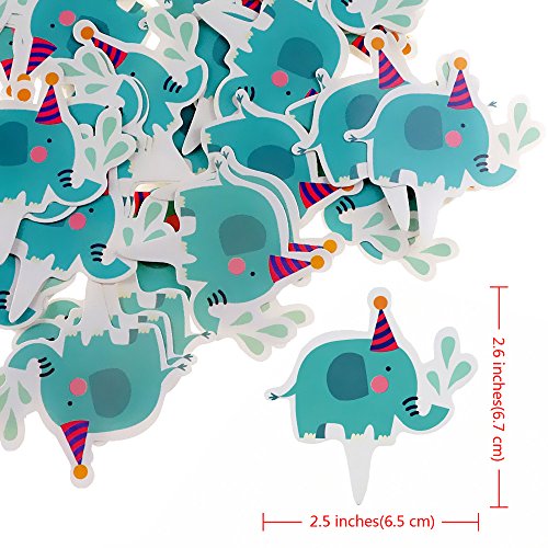- Elephant Birthday Baby Shower Party Decorations: Elephant cake decorations includes 50 blue elephant cupcake cake toppers, this is paper confetti cake topper.
