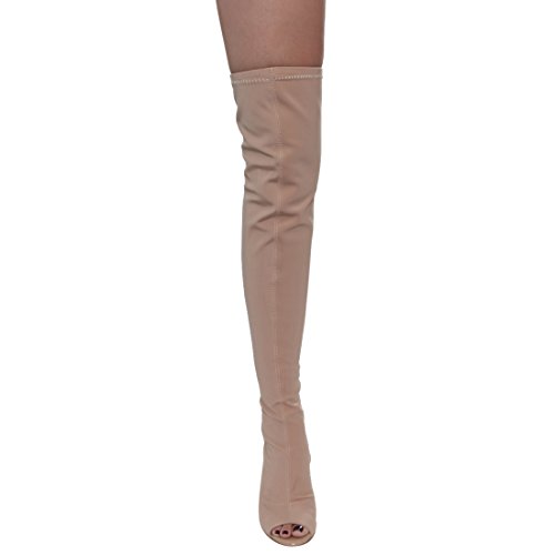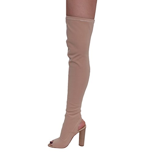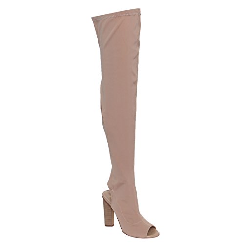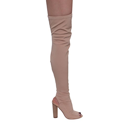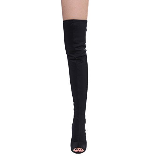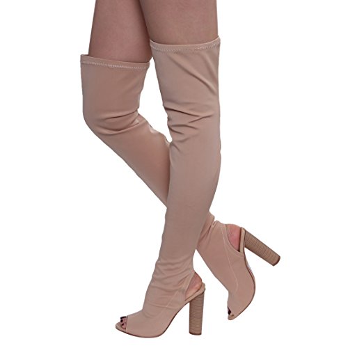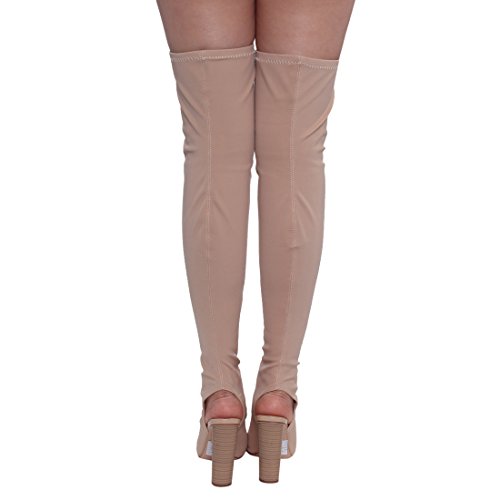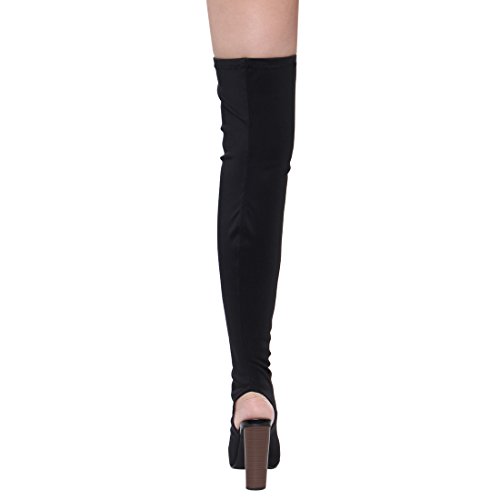 (X2B)/Women's/Boots/DIRECT FROM USA/X2B FI84 Women's Chunky Stacked Heel Peep Toe Thigh High Stretchy Boots