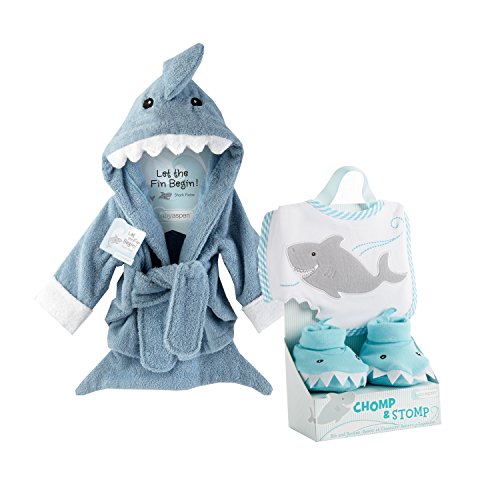 Baby Aspen Shark Gift Bundle with Shark Chomp & Stomp and Shark Robe, BLUE