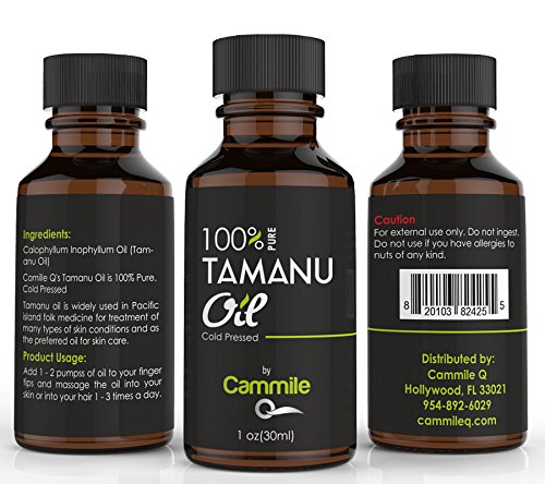 -. Binding : Misc. -. Brand : Cammile Q Pure Tamanu Oil -. EAN : 0820103824255 -. Feature : Look out for fast results. It's usual that customers report a positive change in their skin - whether it is fading of scars, a smoother skin or a clearing of the skin. / Enjoy your skin and face again. See the changes, and enjoy your clear, smooth, and soft skin. / The pureness of the oil secures the most effective result for your skin. / When you order now, our complete satisfaction guarantee protects your purchase. A Stellar 30 day money back guarantee is there for your protection. -. ProductGroup : Beauty -. ProductTypeName : BEAUTY -. Size : 1 oz -. Title : Tamanu Oil - Pure and Cold Pressed - For Skin, Nails, Face, Hair and Scars - Calophyllum Inophyllum (Foraha Nut Seed Oil) - 100 % 30 Days Money Back Guarantee -. UPC : 820103824255