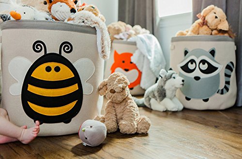 - MADE TO LAST - Grey Bee Animal Theme Collapsible Storage Bins are constructed of a jute canvas material which offers a sturdy, long-lasting design, and durability against wear and tear allowing for years of use