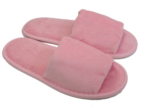 -. Title : TowelRobes Terry Velour Open Toe Unisex Slippers - Pink