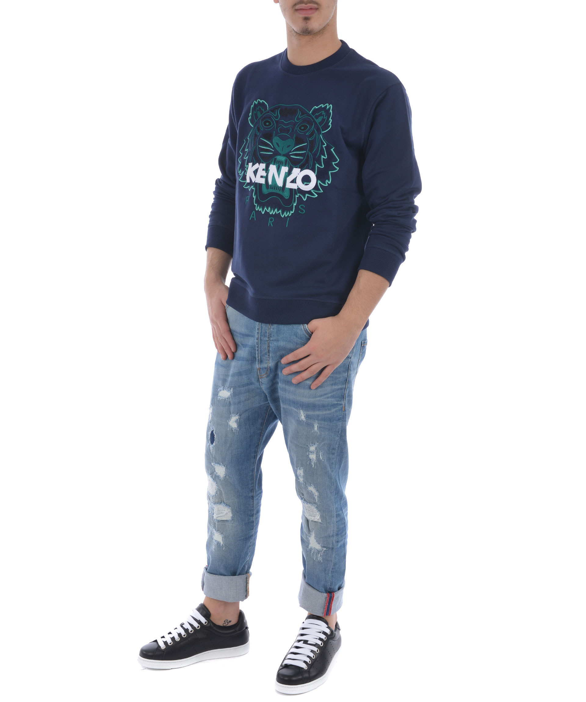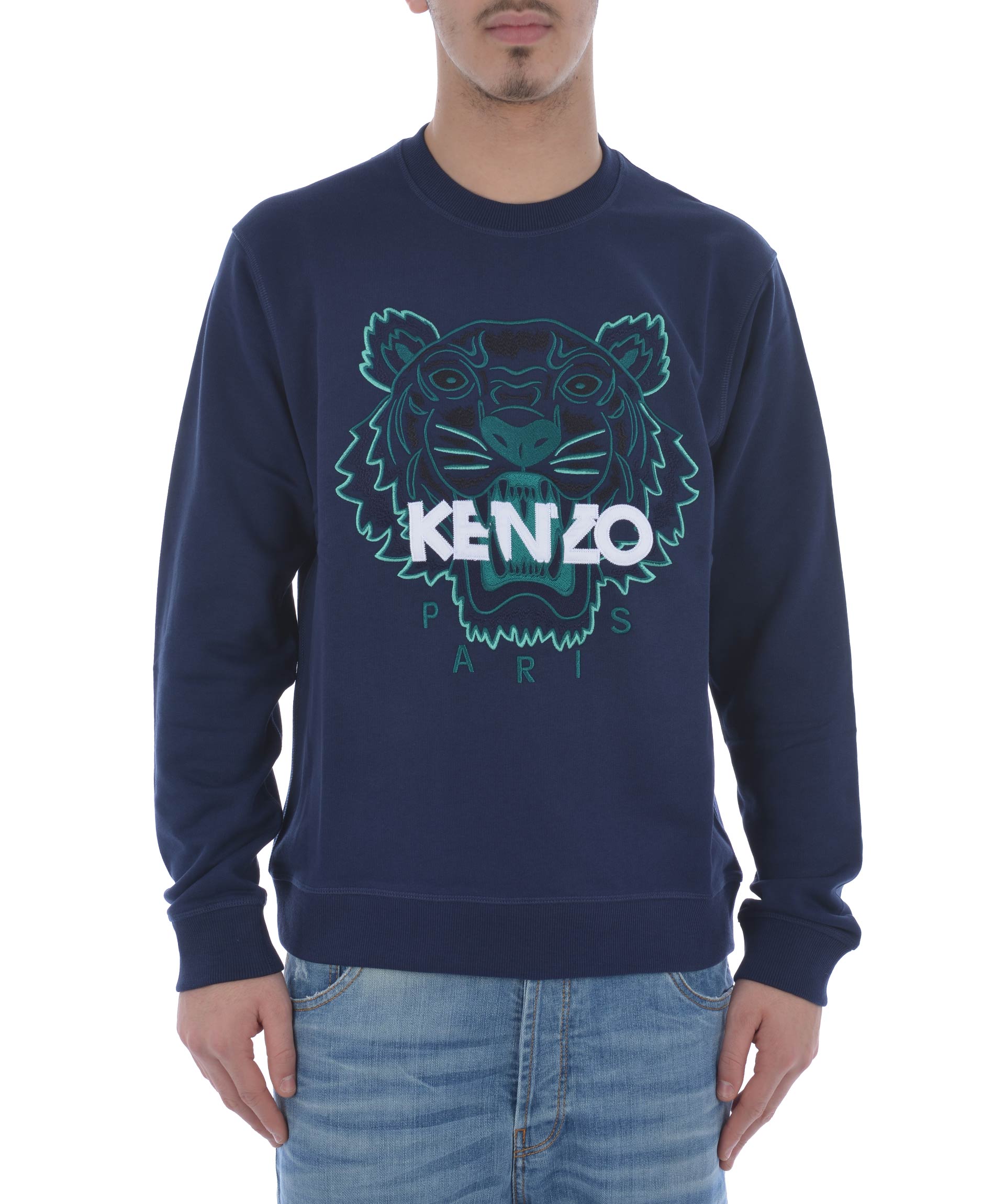 Felpa Kenzo in cotone Blu. Maxi ricamo frontale "tigre". Girocollo a costine. Manica lunga. Polsi e fondo a costine. Misura in foto M 100% cotone