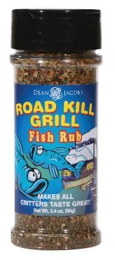 -. Binding : Misc. -. Brand : Dean Jacob's -. EAN : 0715483081490 -. Feature : Road Kill Grill Fish Rub - 3.4 oz. Shaker Jar / Dean Jacob's Road Kill Rubs aren't just for back road mishaps! / Same great recipe you've bought in tins - Tantalizing compliment for fish, shrimp, & lobster. / Lightly oil fish then liberally apply the seasonings and massage into the seafood. Grill, broil, roast or fry as usual. -. IsAdultProduct : 0 -. Label : Xcell International -. Manufacturer : Xcell International -. PackageQuantity : 1 -. ProductGroup : Grocery -. ProductTypeName : GROCERY -. Publisher : Xcell International -. Studio : Xcell International -. Title : Dean Jacob's Road Kill Grill Fish Rub -. UPC : 715483081490