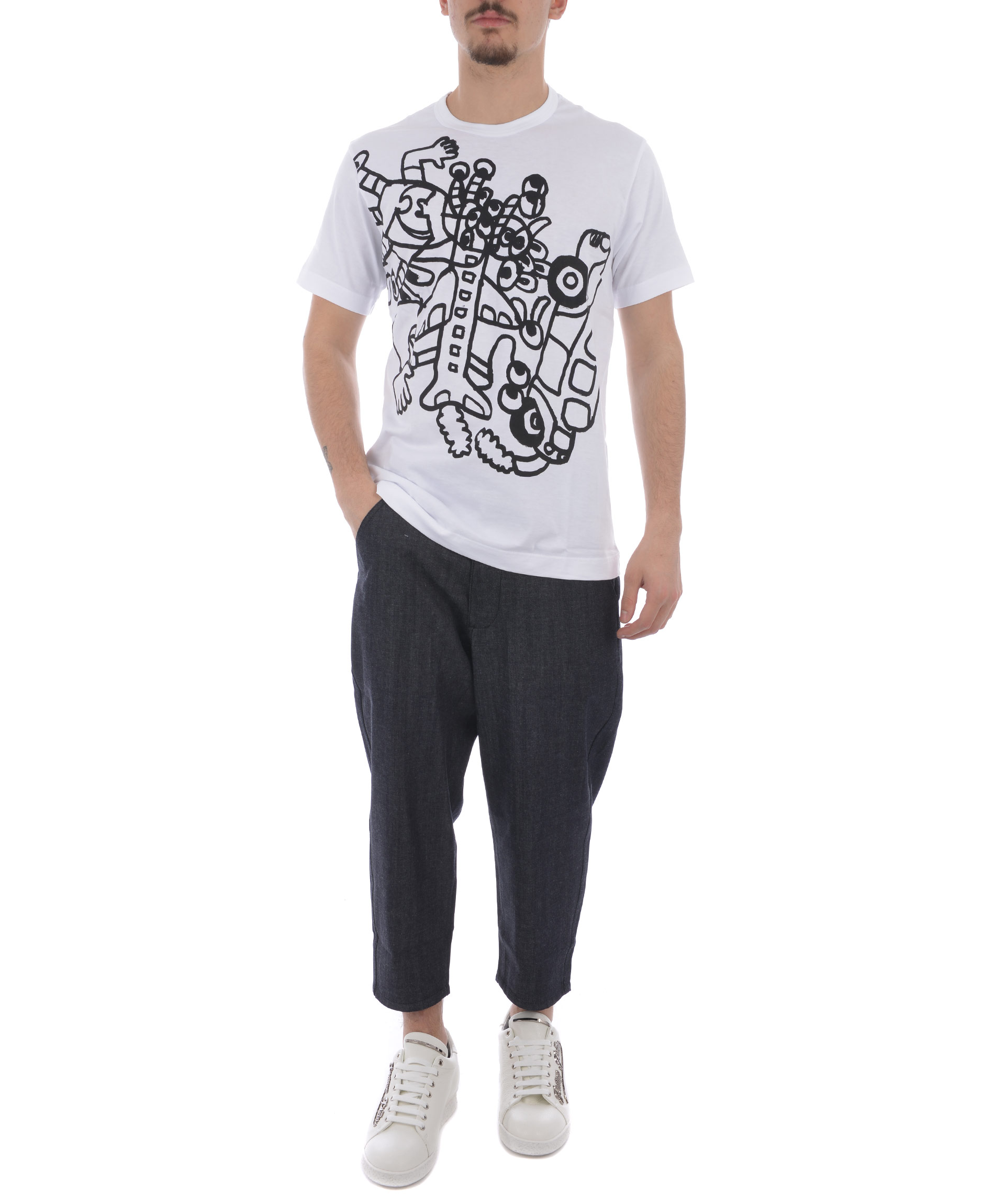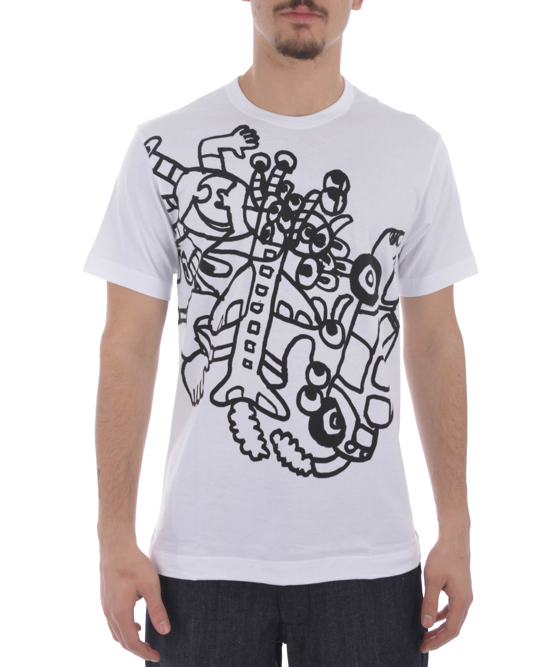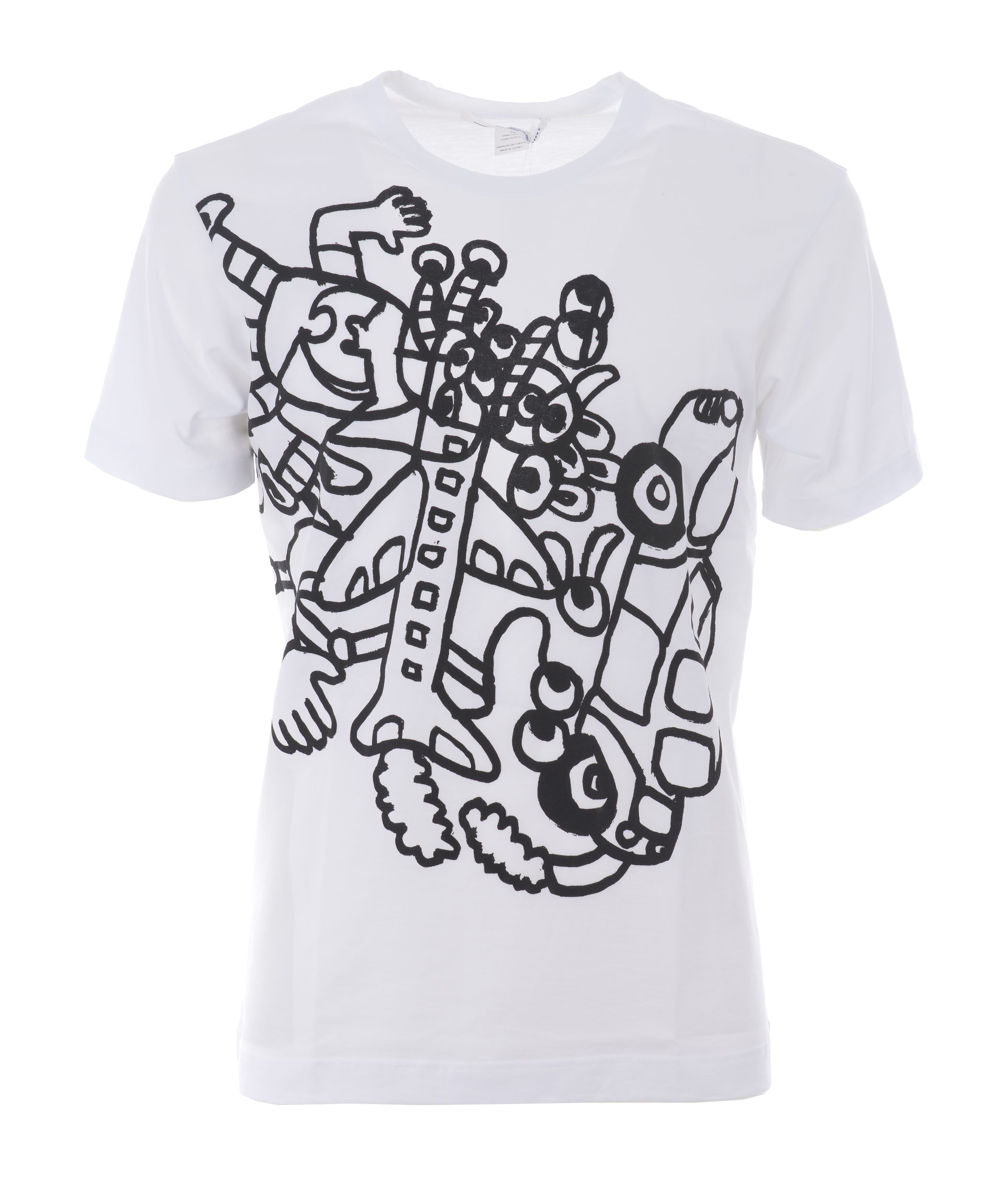 Printed T-shirt from Comme Des Garçons Shirt: White Printed T-shirt with round neck, short sleeves and straight hem.