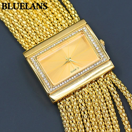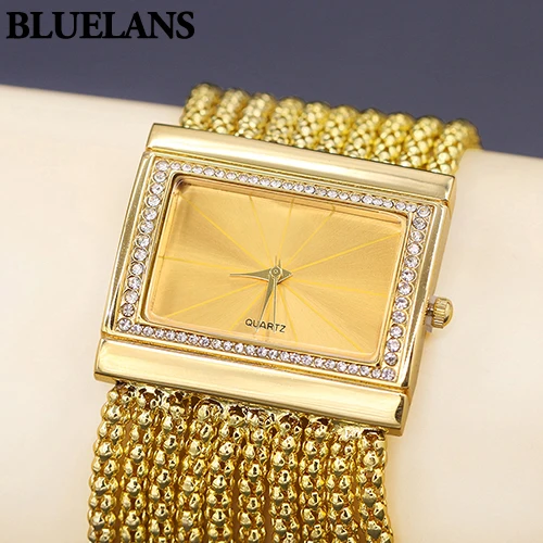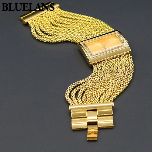 | [해외] 새로운! 뜨거운 판매 클래식 럭셔리 석영 시계 여성 골드 다이아몬드 케이스 합금 밴드 팔찌 시계 |