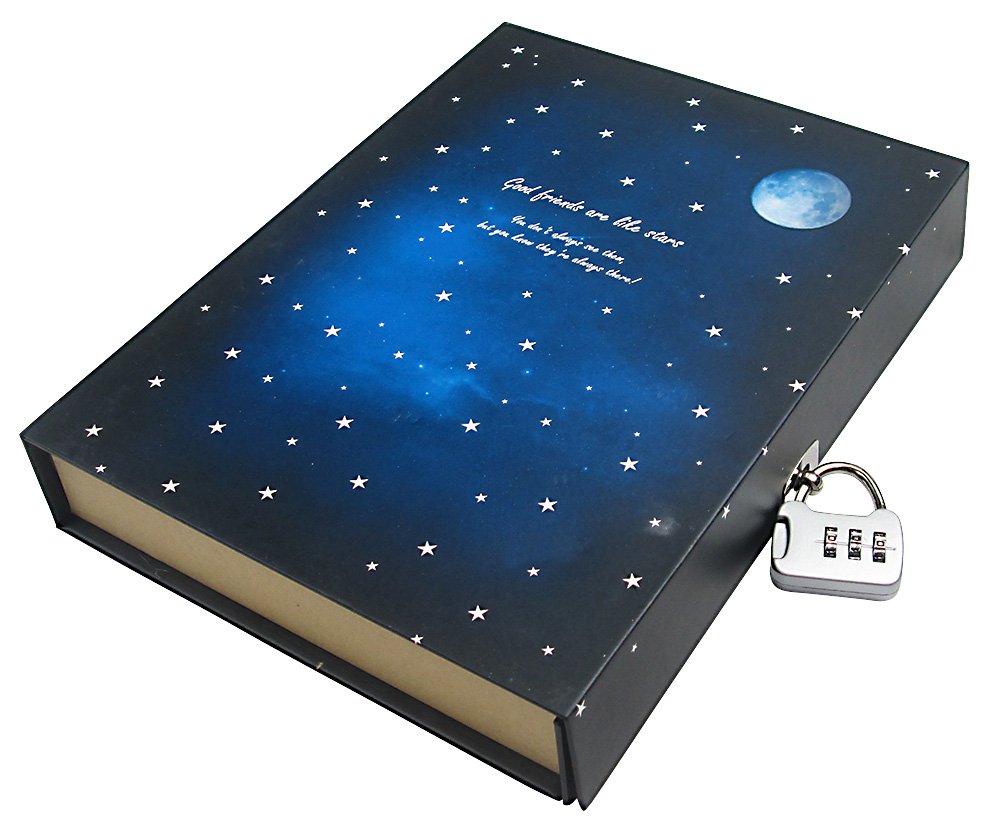 Scenery of the calm where the mind settles Landscape of the starry sky Design Keys with memory lock Memorial diary entry Diary note With feather style pen with set.