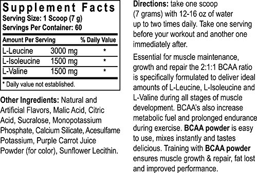 -. Feature : Scientifically Validated 2:1:1 Ratio / 6 Grams of BCAA's Per Serving / MUSCLEFUEL: Perfect Muscle Fuel Support / LEANMASS: Muscle Growth Activator / MYORECOVERY: Hyper-Active Muscle Recovery