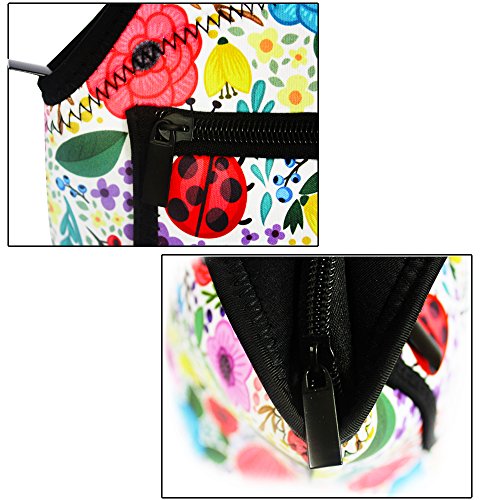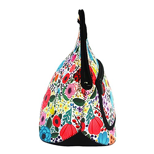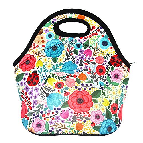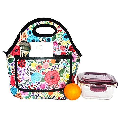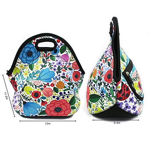 MangGou Floral Pattern Lunch Bgas with Side Pocket Zipper Closure Waterproof Neoprene Reusable Insulated Lunch Boxes for Women Teen Girls Lunch Bag Box Tote for School Work Office Picnic Travel