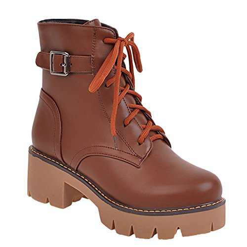 (Carolbar)/Women's/Boots/DIRECT FROM USA/Carolbar Women's Lace Up Buckle Mid Heel Martin Oxfords Short Boots