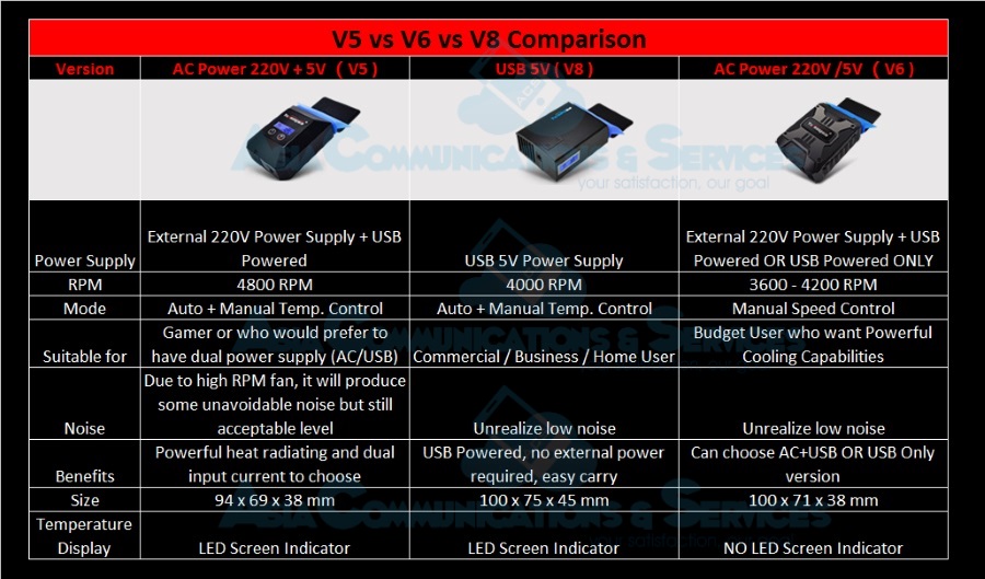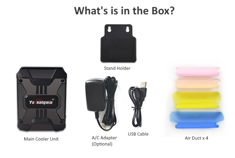 Name Yuesong V6 Suction Type Laptop Cooler LCD Cooling Fan / Radiator USB / AC Powered Size (L x W x H) (CM) 9.8 x 7 x 3.5 1 x V6 Air Cooler