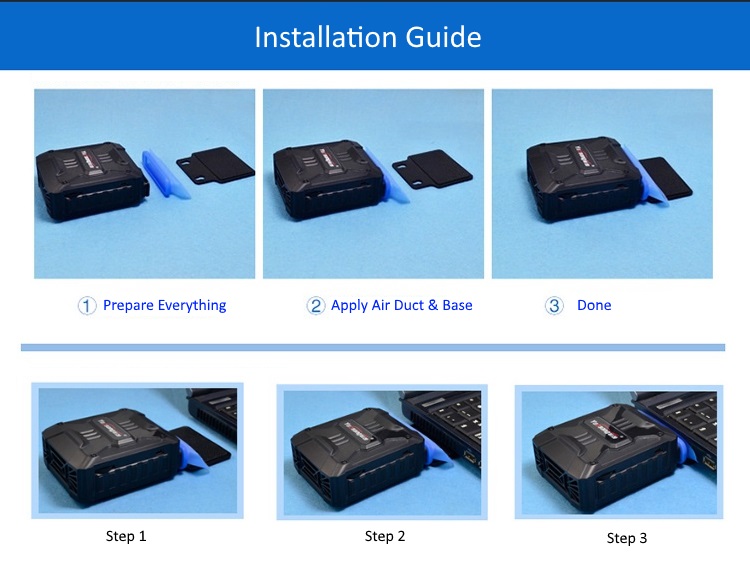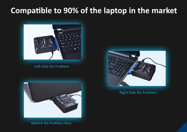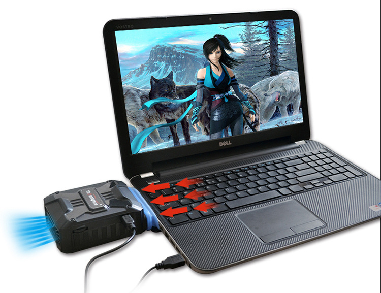 If you are still using the antiquated bottom cooling pad, then it's time to rethink your approach. This V6 Silent Design Cooling Fan will redefine the cooling experience for you. Designed with a special suction style fan to pull away heat, it has solved the low efficiency of other cooling pads. By directly connecting to the air outlet port to draw the hot air out of the running CPU to optimize efficiency, it is a far superior solution than traditional cooling pads which only redirect ambient surface heat.