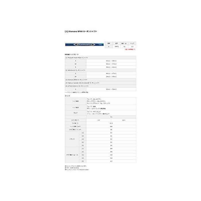 원본상품명: DUNLOP(ダンロップ) ドライバ SRIXON Z565 ドライバ Diamana BF60 カボンシャフト ロフト角:9.5度 番手:1W フレックス:S