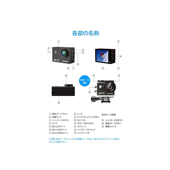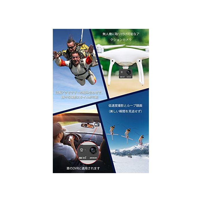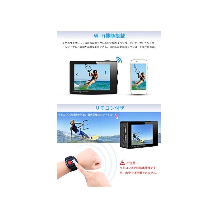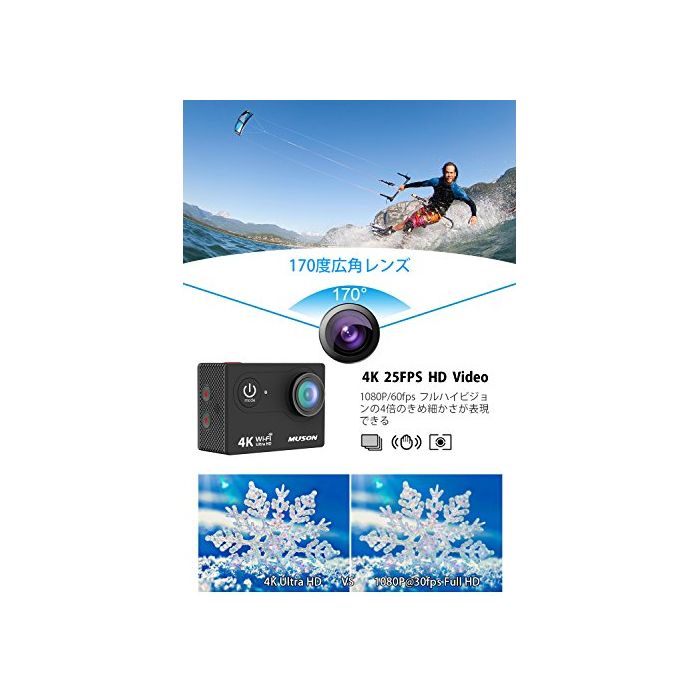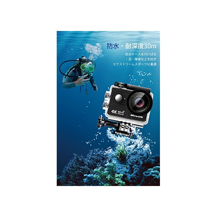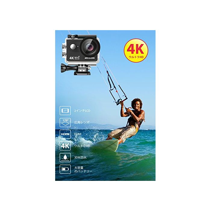원본상품명: MUSON(ムソン)【メカ直販/1年保付】アクションカメラ 4K 30M防水 1200万素 2インチ液晶面 WiFi搭載 リモコン付き 170度角レンズ ハルメット式 スポツカメラ バイ