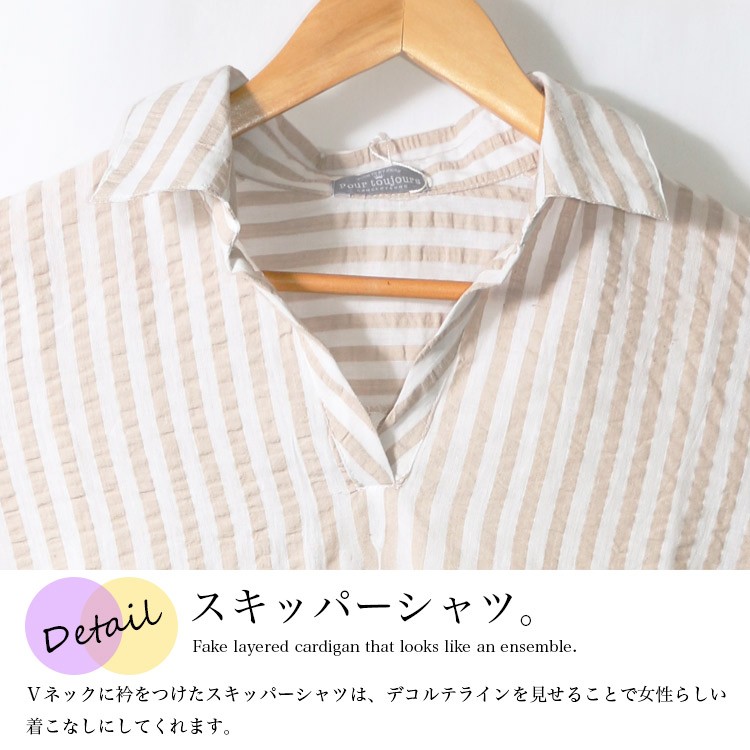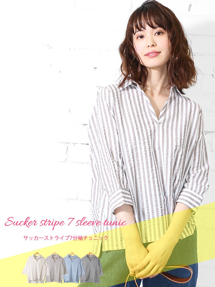商品名:サッカーストライプ7分袖チュニック