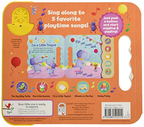 five favorite playtime songs! The lyrics for each song are accompanied by colorful illustrations, and the matching audio button plays the tune.