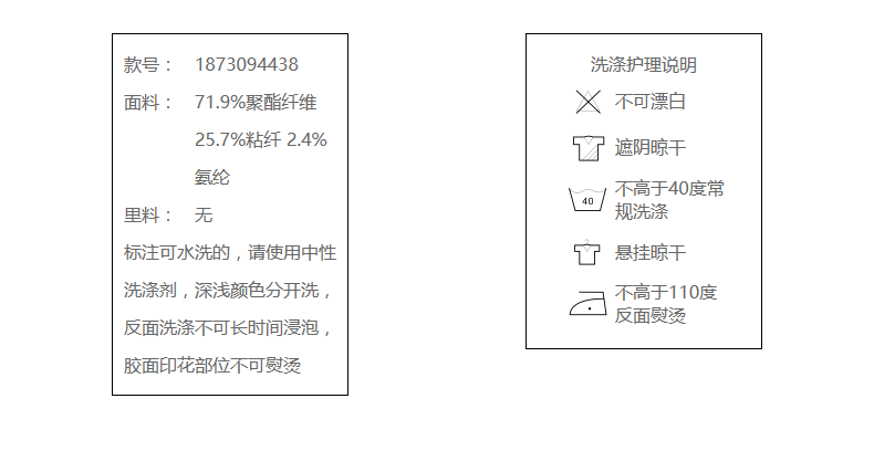 71.9%聚酯纤维 25.7%粘纤 2.4%氨纶
