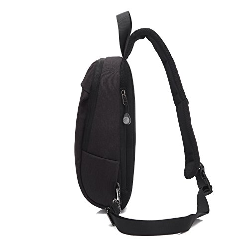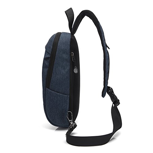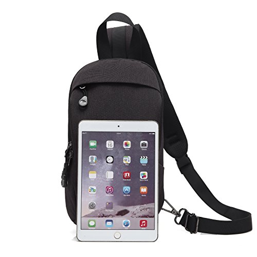 -. Feature : Material. High quality water resistant nylon fabric, durable buckle and fluent metal zippers. / Dimensions: 6.3" L x 12.2" H x 3.5"W. Weight: 0.7lb, super light weight. / Structure. A total of 3 compartments: 1*front zipper pocket for cellphone, napkin, keys and other small items easy to access; 1*main pocket within 3 compartments and a small zipper pocket fit iPad mini, iPhone, Kindle, small, umbrella, wallet, charger, cables, checkbook, etc; 1*back zipper pocket perfect for your P.R.Ivate items. / Comfortable to Wear. Padded strap and heavy sponge mesh back provides great air ventilation, reduce the weight of your shoulder, making the sling bag comfortable to wear even when loaded with all your gears! / Fashion& Classic style. Sleek and concise design, perfect as a crossbody hiking and traveling daypack, chest bag, sling bag for men suitable for office, school, outdoor, business and other occasions.