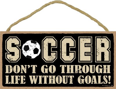 (SJT94499) Soccer - Don't go through life without goals! 5" x 10" primitive wood plaque, sign