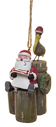 Coastal Pelican on Piling with Santa Christmas Ornament by Cape Shore
