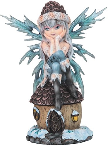 StealStreet SS-G-91812 Light Blue Fairy Sitting on Hut with Snow Trinket Box, 8.75"