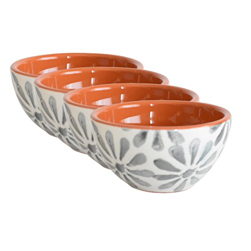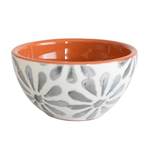 Trendy mix and match Grays that will fit any occasion or relaxed life style. Each piece in the Margarida collection is hand-painted with a unique variation of a Grey and white floral motif contrasted with its beautiful natural colored ceramic. The Terra Cotta is exposed around the rims and on the inside of the pieces showing the clay's natural Color and finished with a transparent glaze. This collection is hand crafted in Portugal and is safe for the dishwasher and microwave.Feature
